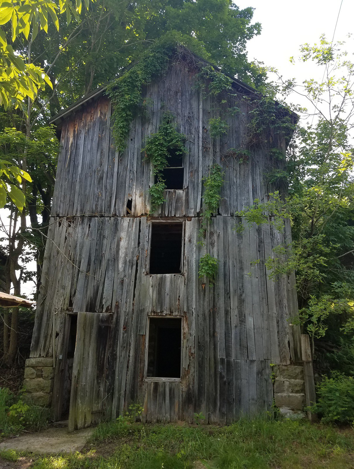 - In this photography from 1987, my barn still had all of its siding. The large tree near the barn must have fallen long ago, and I know of no remnant of it. The large tree behind the neighbor’s trailer is a still standing silver maple.