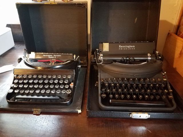 Word processing. On the left is s Remington Portable Model 5, and on the right a Remington Noiseless model seven. The seven was considerably more expensive than the 5, but the 5 is my favorite. It’s a full education trying to figure out all of the levers on these things.